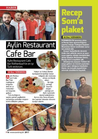 Aylin Restaurant sı Recep Som sponsorluğunu