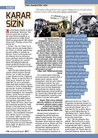 Kemal´e karşı Din adına bir müca- politika batağından çıkarıp yüceltmek yalanı tarihe geçirip