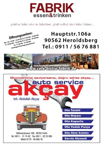 Mo.- Do. 10.00 - 14.30 Uhr & 17.30 Uhr - 23.00 Uhr Tel.: 0911 / 56 76 881