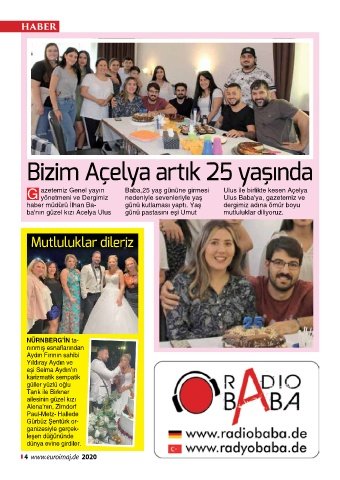 G azetemiz Genel yayın Baba,25 yaş gününe girmesi Ulus ile birlikte kesen Açelya