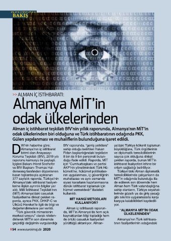 değerlendirmelere yer verildi. Alman iç istihbaratı raporun- “ALMANYA MIT’IN ODAK